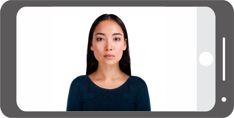 • Roupas escuras ou de tons mais vivos criam contrastes melhores. Use uma camisa/blusa de cor diferente do branco para evitar fusão entre a roupa e o fundo. Não vista chapéu, gorro ou qualquer acessório que obstrua a face.